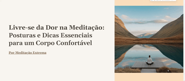 Com o este guia prático + Áudibook "Livre-se da Dor na Meditação", você aprenderá a ajustar sua postura, usar suportes adequados e integrar alongamentos simples para uma meditação confortável e transformadora.